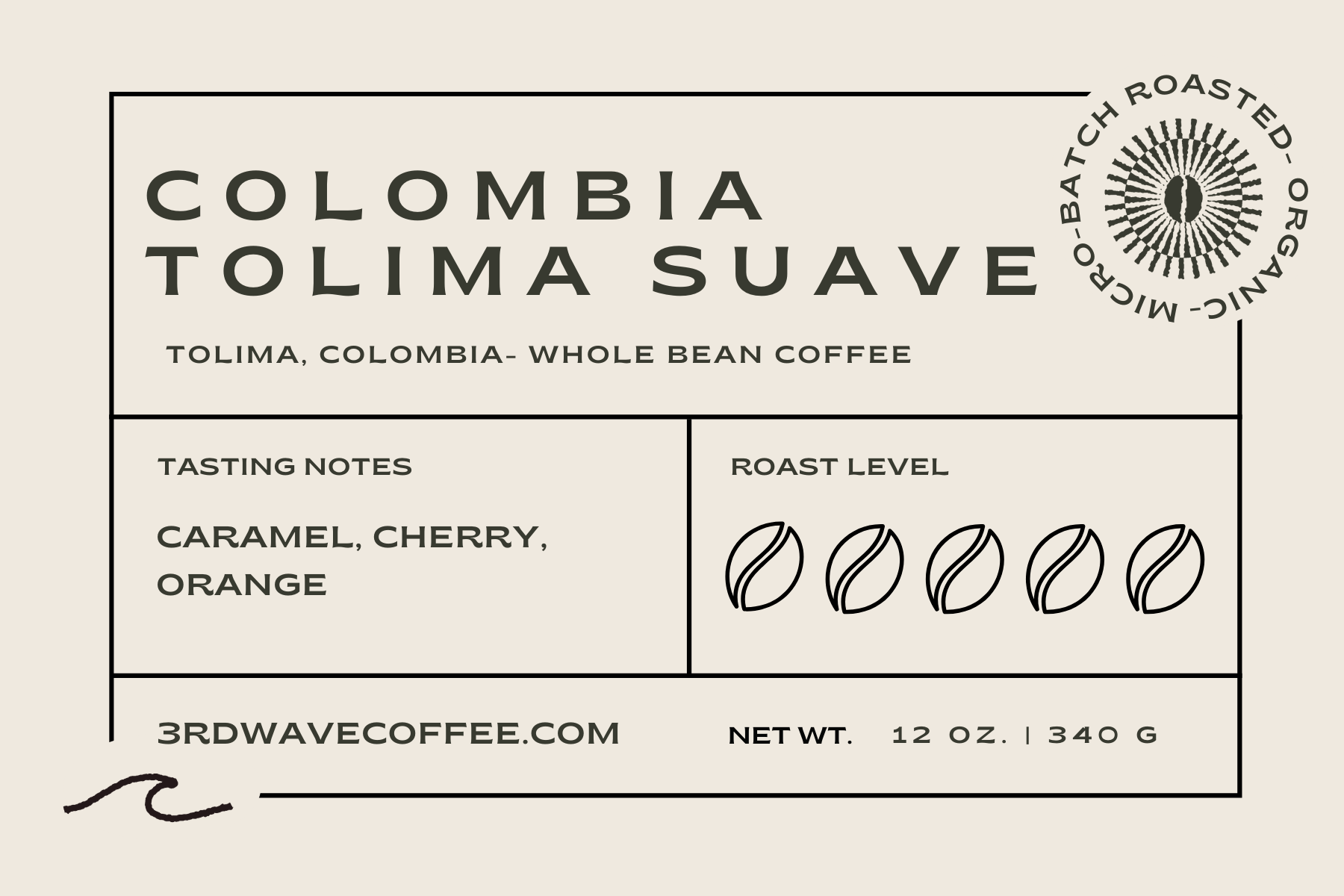 Organic Colombia Tolima Suave is sourced from Tolima, Colombia, grown at elevations of 1650–2100 meters. Varietals include Colombia, Typica, and Caturra. Fully washed and patio-dried to preserve a bright, balanced character.